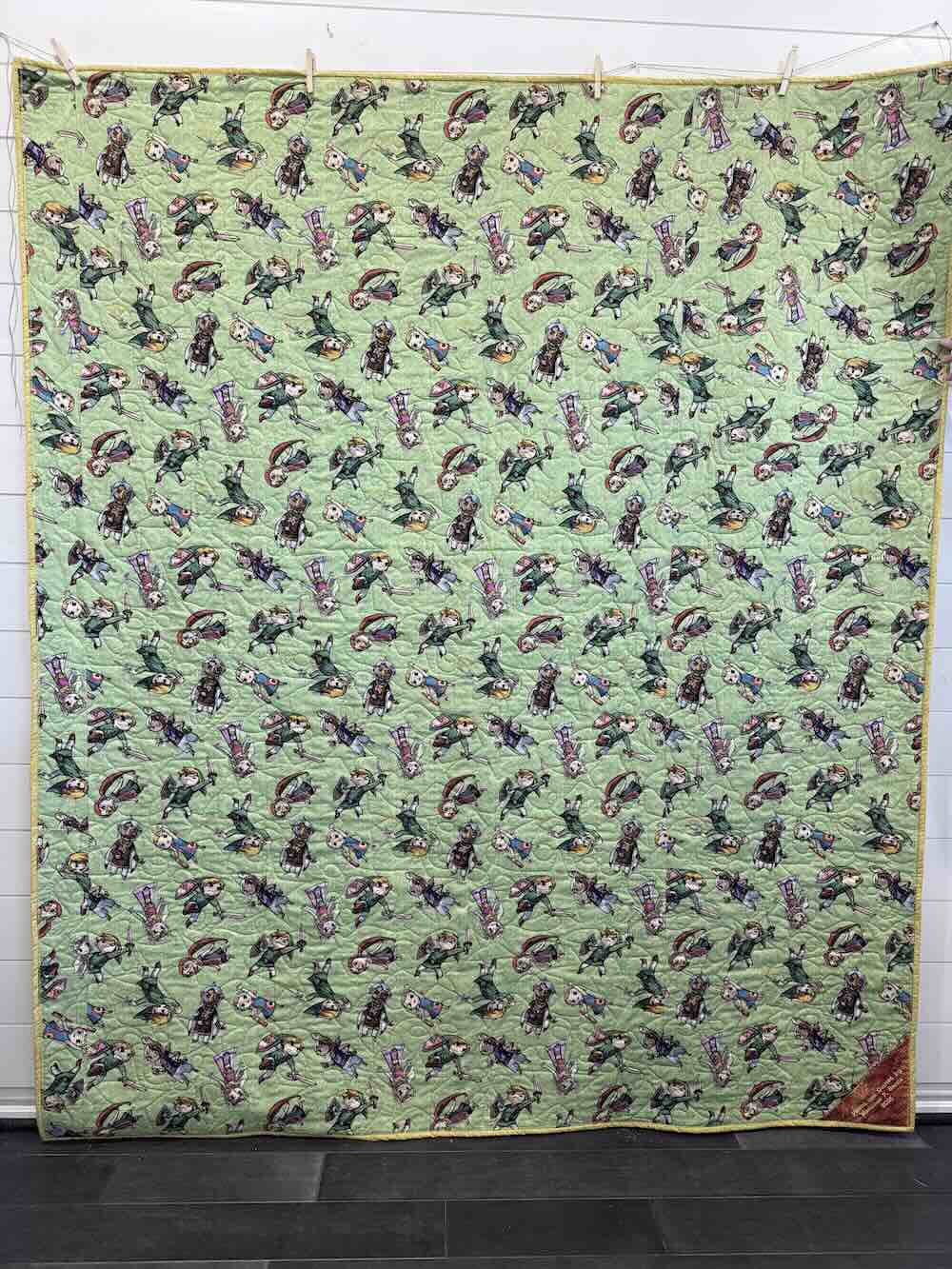 Bespoke quilt featuring artwork from the Legend of Zelda series made with love by Mama Garcia.